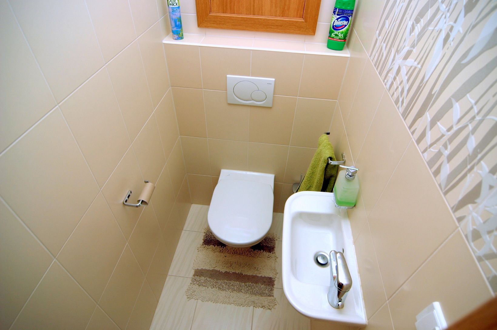 Vždy je lepšie oddeliť kúpeľňu od WC. Toaleta a bidet sú v kúpeľni praktickými doplnkami, musí na ne však byť dostatok miesta a malo by byť v dome aspoň ešte jedno WC ako samostatný priestor. Jednoduchým spojením kúpeľne s WC dochádza k veľkým “logistickým” problémom, zvlášť vo väčšej rodine. Ak umiestňujete do kúpeľne WC, je ideálny závesné o dĺžke 50 alebo 52 cm, prípadne však možné inštalovať aj WC rohové. Bidet umiestňujeme vedľa WC. Ak  je nutné z dôvodu bezbariérového riešenia v dome nutné inštalovať aj madlá, dajte pozor na ich správne umiestnenie, aby vozičkárovi tieto riešenia pomohli a nie práve naopak prekážali.