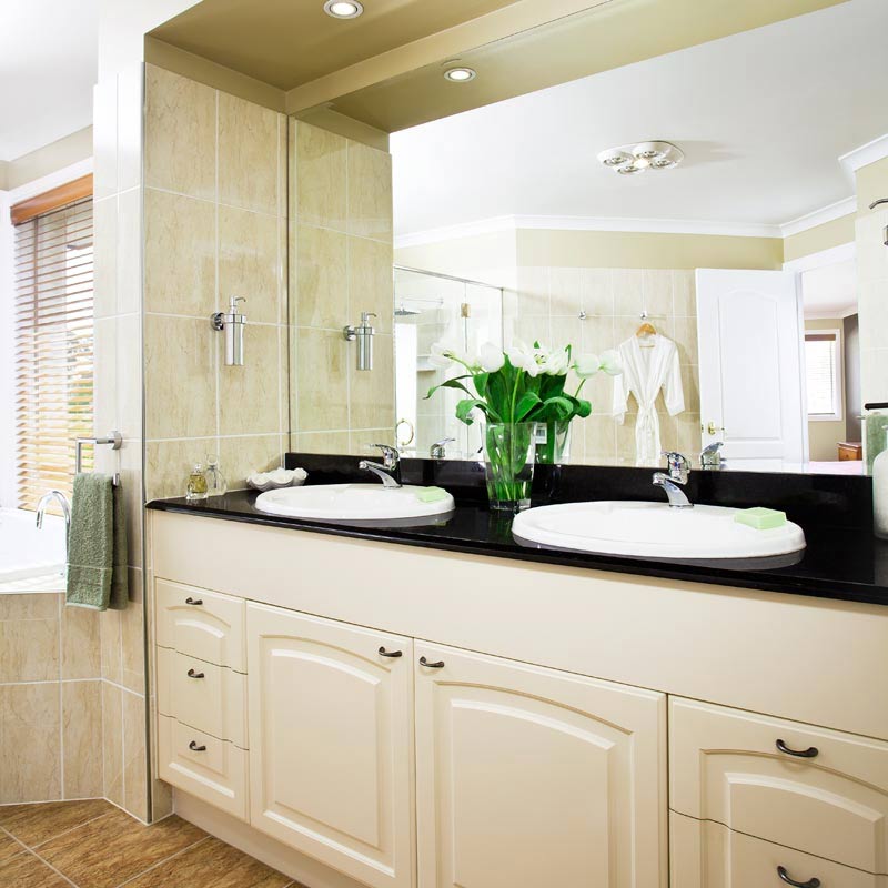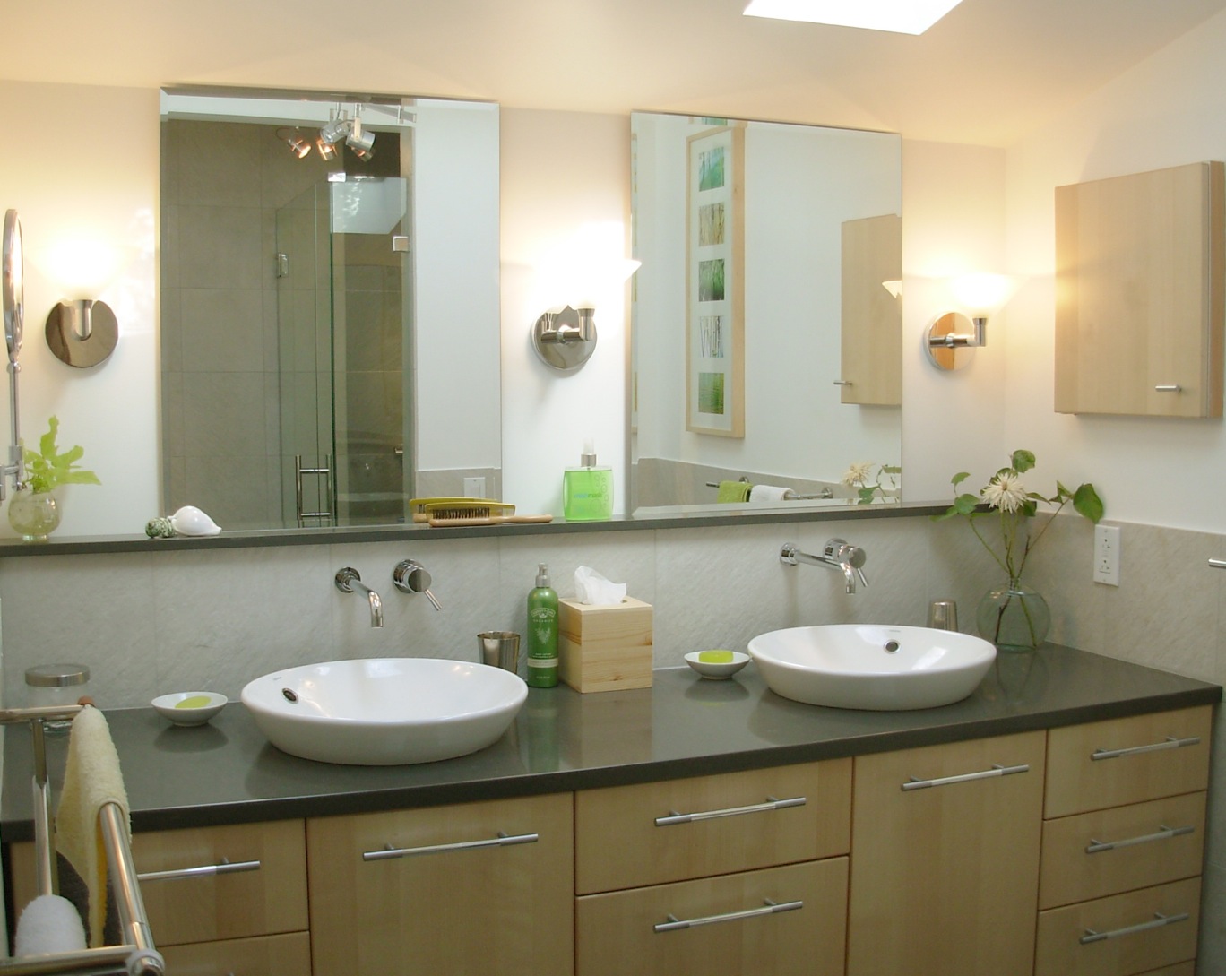 Umývadlo by malo mať aj v malej kúpeľni šírku aspoň 500 mm. Hĺbka umývadla od steny pritom môže byť len 230 mm lepšie je aspoň 250 mm. Navyše možno použiť aj umývadlo rohové, rovnako ako je tomu v prípade sprchového kúta, vane či WC. Veľmi praktické je zároveň využitie priestoru pod umývadlom. Umývadlo je možné pritom priamo usadiť do skrinky. Získame tak praktické miesto na rôzne predmety, chemikálie či uteráky a podobne. Vhodnejšie je závesné riešenie skrinky, pretože pod ňou potom ľahko vytrieme. Nad umývadlom je nakoniec vhodné umiestniť zrkadlo a ak máme v kúpeľni málo priestoru, je veľmi praktická jeho kombinácia so skrinkou. Samotné zrkadlo potom tvoria jej krídlové otváranie (dve krídla či jedno). A nezabudnite na vhodné osvetlenie zrkadla, obzvlášť tu je intenzívne a nezaujaté osvetlenie veľmi dôležité. Vo väčšej kúpeľni nie je na škodu inštalovať umývadla dve. Početnejšia rodina to určite veľmi ocení.