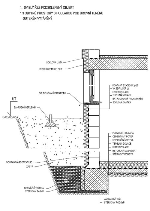 Taktiež nesmieme zabúdať na kvalitnú nenasiakavú tepelnú izoláciu spodnej stavby, ktorá jednak zabráni nadmerným únikom tepelnej energie cez konštrukcie do zeminy a zároveň plní funkciu ochrannú pred mechanickým poškodením hydroizolačnej vrstvy. Na zateplenie základov sa používajú nenasiakavá tepelné izolácie najbežnejším riešením je použitie extrudovaného polystyrénu XPS v hrúbkach od 50 do 100 mm.