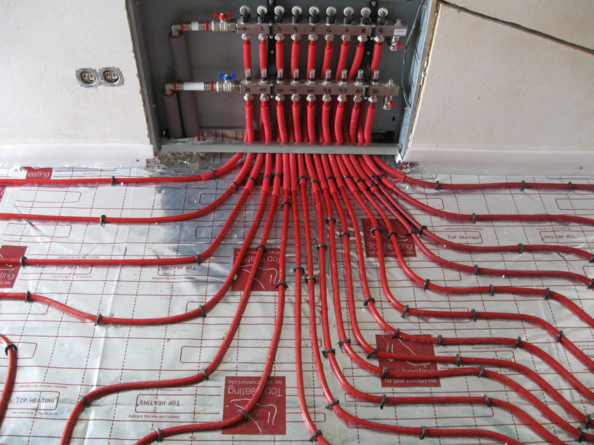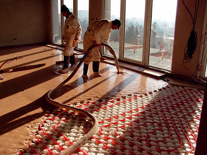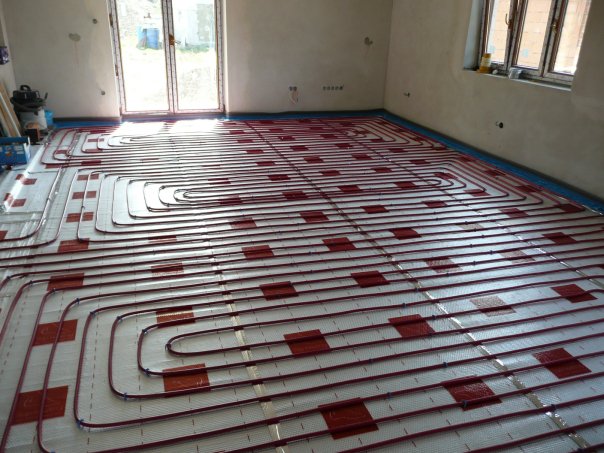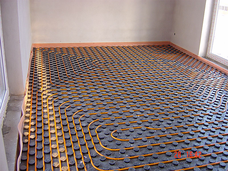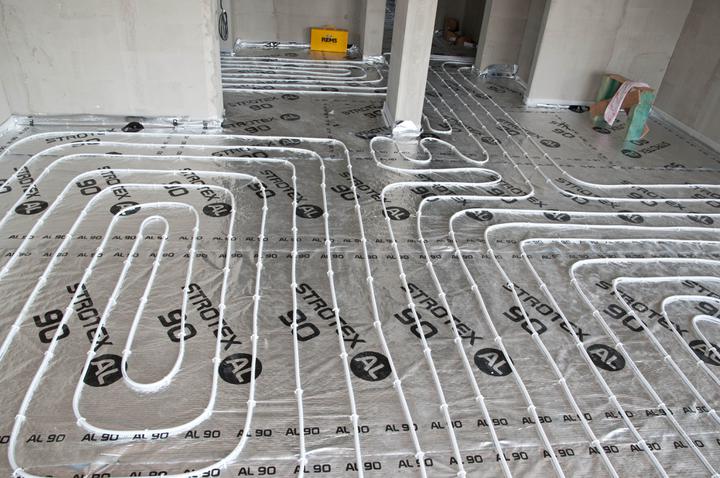 Podlahové kúrenie je vhodné inštalovať vo všetkých miestach podlahovej plochy obytných miestností. Iba miesta, ktoré sú stabilne zastavané (pod kuchynskou linkou, vstavanými skriňami či vaňou) vynecháme. Podlahu pod kúrením je nutné dôkladne izolovať, aby nám teplo neunikalo do konštrukcie alebo mimo objektu. Ak máme poschodový rodinný domček, použijeme na prízemí hrubšie izolácie ako na poschodí. Z vrchnej strany zalievame podlahové kúrenie samonivelačným anhydritovým poterom hrúbky okolo 50 mm alebo z ekonomických dôvodov betónovým poterom hrúbky okolo 60 mm.